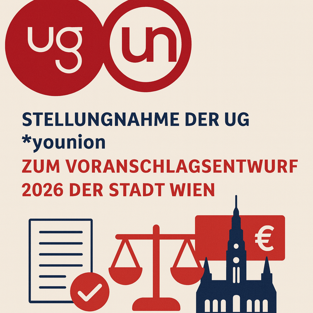 Als unabhängige Gewerkschafter*innen in der younion (kurz UG*younion) möchten wir hiermit Stellung zu dem Voranschlagsentwurf 2026 der Stadt Wien beziehen.